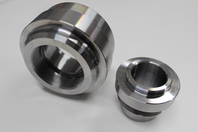 寸NC旋盤を使用し、φ90×φ35(穴)×55程度のS45C~S53C相当の材料1個及びφ65×φ25(穴)×50程度のS45C~S53C相当の材料1個に、プログラムの作成・NCテープの作成又は記憶編集機器内への入力・テープ運転又はメモリ運転によるプログラムの確認・切削加工の作業手順で、内外径削り、内外径面取り、外内R削り、外径溝削り、内外端面削り、ねじ切り等の加工を行い、ねじ部で組み付けられる部品を製作します。